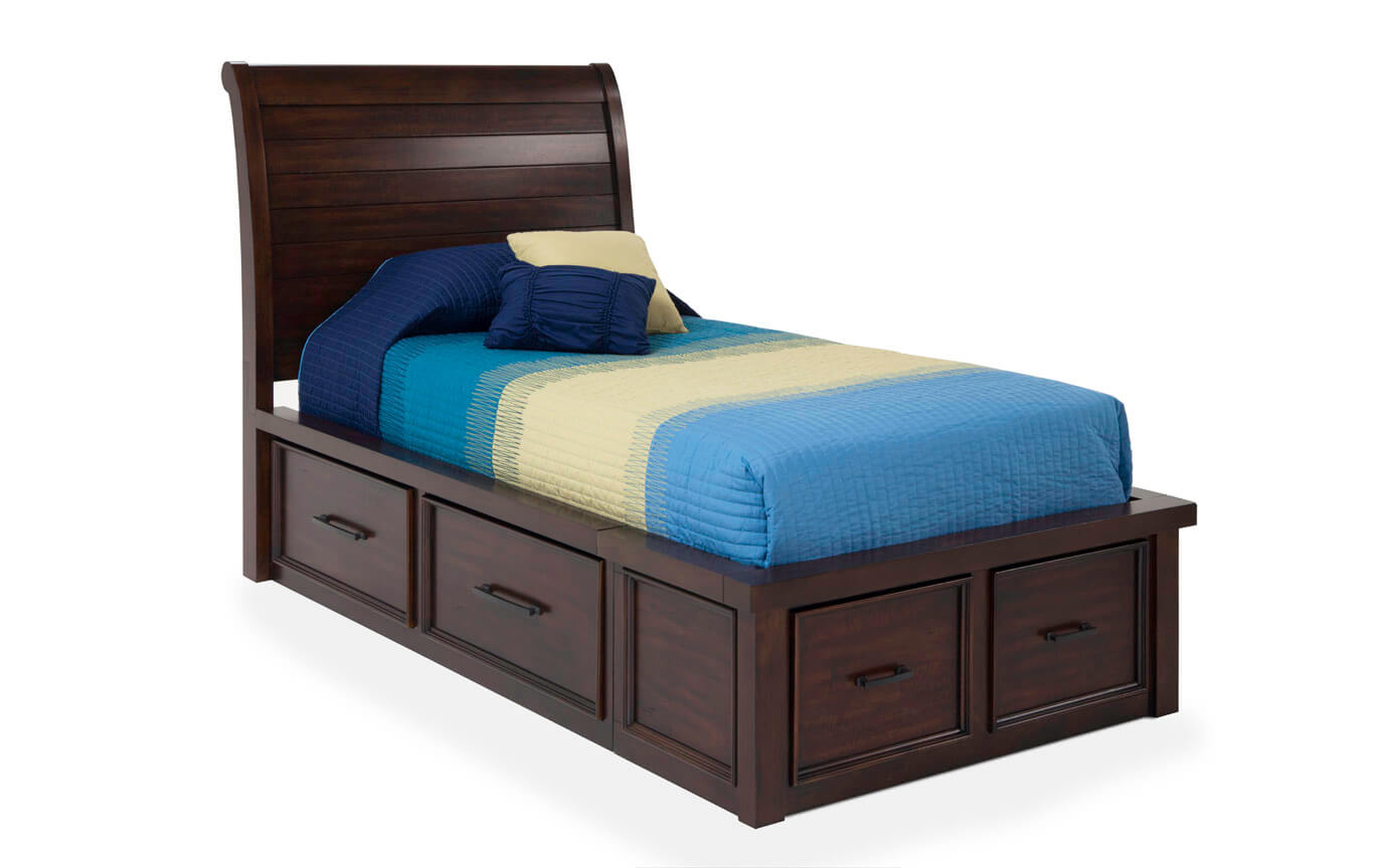 Aspen home oxford sleigh bed with storage. The most fun part of bed shopping is selecting from the many different styles available. Flynnter king sleigh storage bed w/dresser & mirror. The sleigh bed looks great in this rustic bedroom. Cambridge queen storage sleigh bed.
